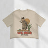 She is most known for her western critters crop tops/shirts and illustrations. This series plays off of the themes of spaghetti westerns that Brown used to watch every Saturday with her grandfather. She includes child-like elements along with adult themes to honor her late grandfather as well as her childhood. These pieces bring up a sense of nostalgia and fun that our customers love.