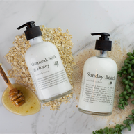 This seriously luxurious lotion contains goat's milk, honey and natural shea butter. Goat's milk is high in proteins, triglycerides, vitamins A, B6, B12 and E. All this and more go into making this lotion an excellent moisturizer. Honey is a natural antioxidant and anti-inflammatory agent. Natural shea butter aids in healing and skin regeneration. Your skin will thank you! Comes in an 8oz glass apothecary bottle with clear labeling staying true to our vision of a simpler product.