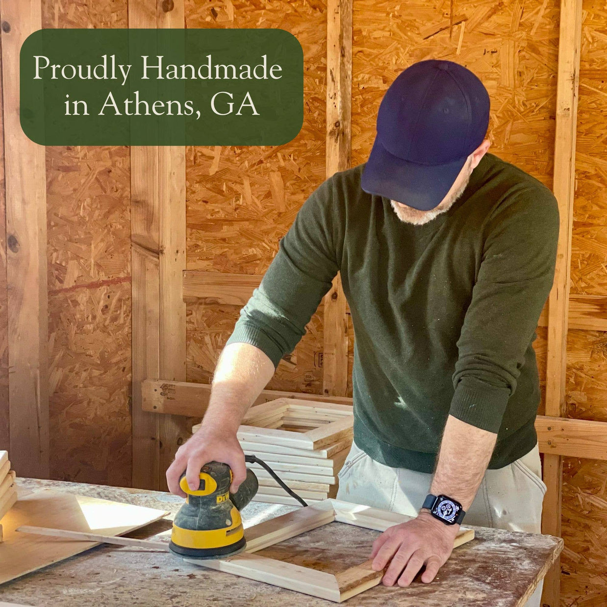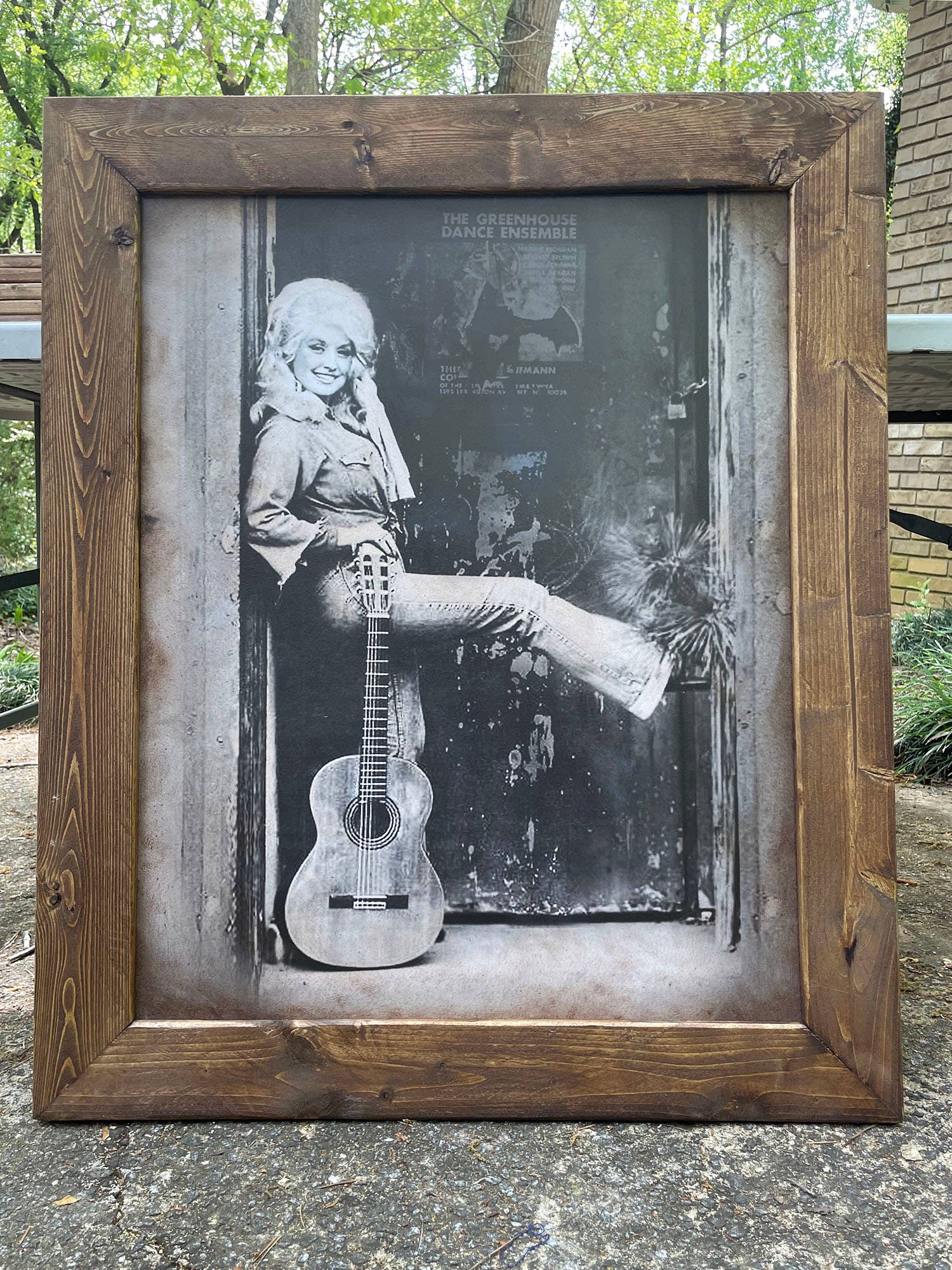 Brian Swinford creates his pictures using a chemical antiquing process that he pioneered, giving the finished product a leathery texture for a true vintage look. He also builds all of his frames by hand at his shop in Athens, GA. He has given vintage posters, albums, and iconic images new life through his unique artwork.
