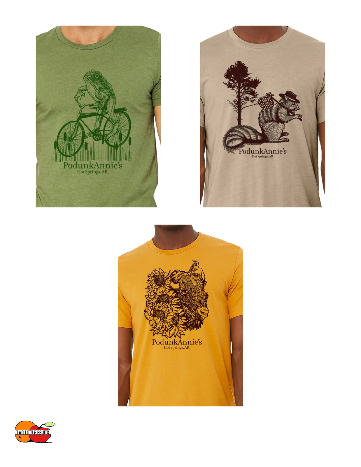 Put a little PodunkAnnies in your closet! Our PodunkAnnie's graphic t-shirts from Two Little Fruits are soft, sweet, and unisex.