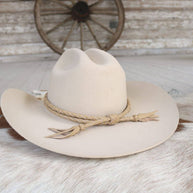 Crafted from soft, quality leather, this hat band features thick braided ropes that add a rustic touch to any cowboy hat. Two braided leather strands wrap around the crown, finished with tassels. The adjustable design ensures a comfortable fit for most hat sizes, and since each band is handmade, no two are exactly alike. * Color: Camel * Adjustable, One size fits most * Made in Mexico with Italian Leather * Handmade * *Hat not included*