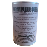 Funny armadillo jokes and an interesting fact on the can