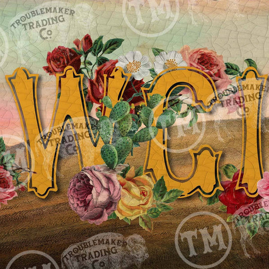 Original designs by TroubleMaker Trading Company. These are printed and framed by us here in Texas. The rustic frames are made per our specifications in Mexico. Every frame will be a bit different as they are all handmade.