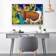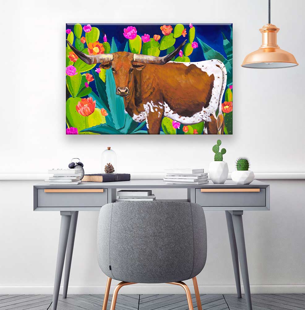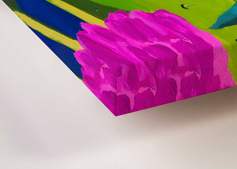 Art created by The Stationery Bakery. The giclee method is utilized to achieve optimum clarity and color resolution. Printed onto an artist's grade premium canvas. Each piece is hand stretched over a 1.5" deep all-natural wood frame. The canvas wraps around the sides providing a finished decorative edge. Each piece arrives ready to hang in your home and artist biography information is included so that you may learn more about his or her inspiration.