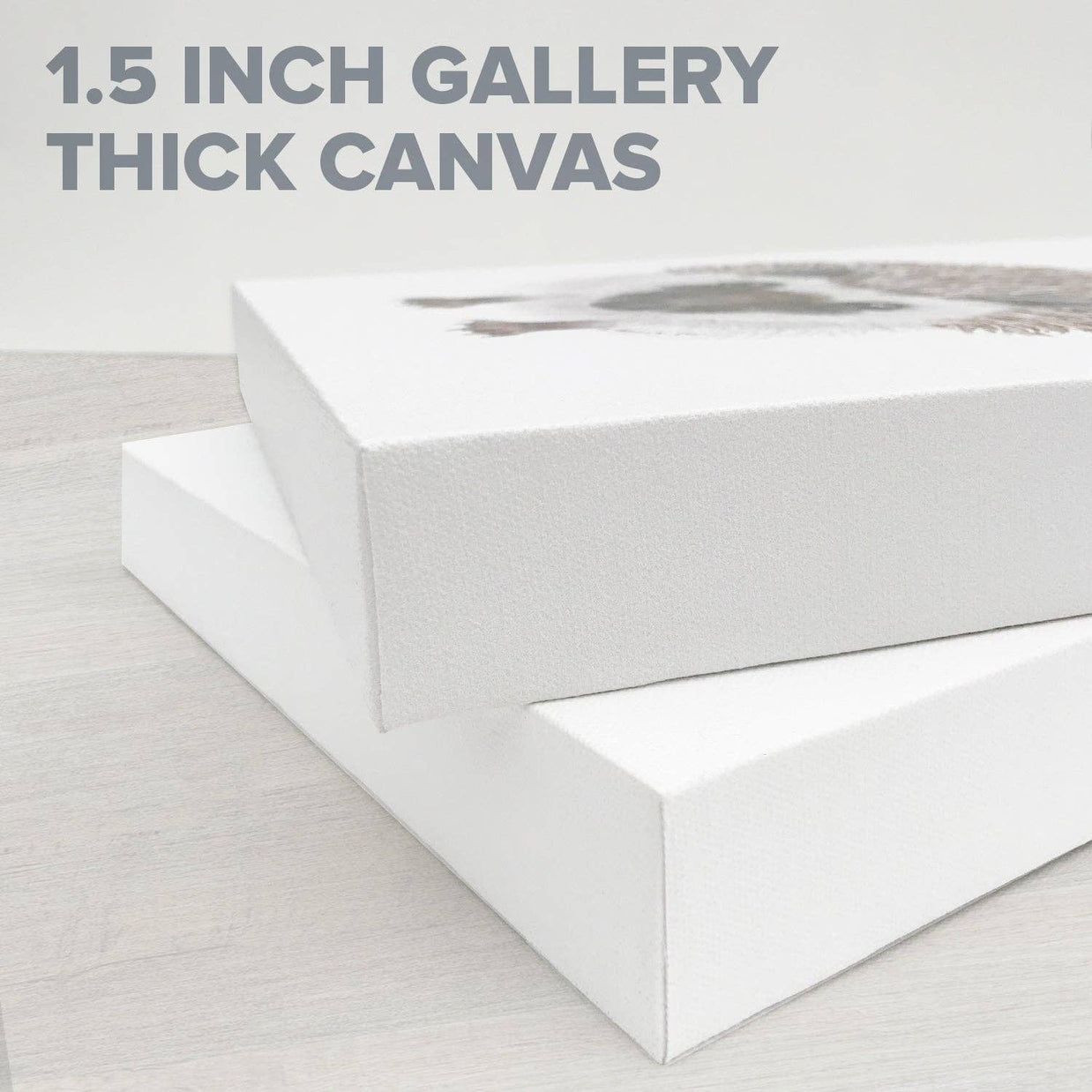 Art created by The Stationery Bakery. The giclee method is utilized to achieve optimum clarity and color resolution. Printed onto an artist's grade premium canvas. Each piece is hand stretched over a 1.5" deep all-natural wood frame. The canvas wraps around the sides providing a finished decorative edge. Each piece arrives ready to hang in your home and artist biography information is included so that you may learn more about his or her inspiration.