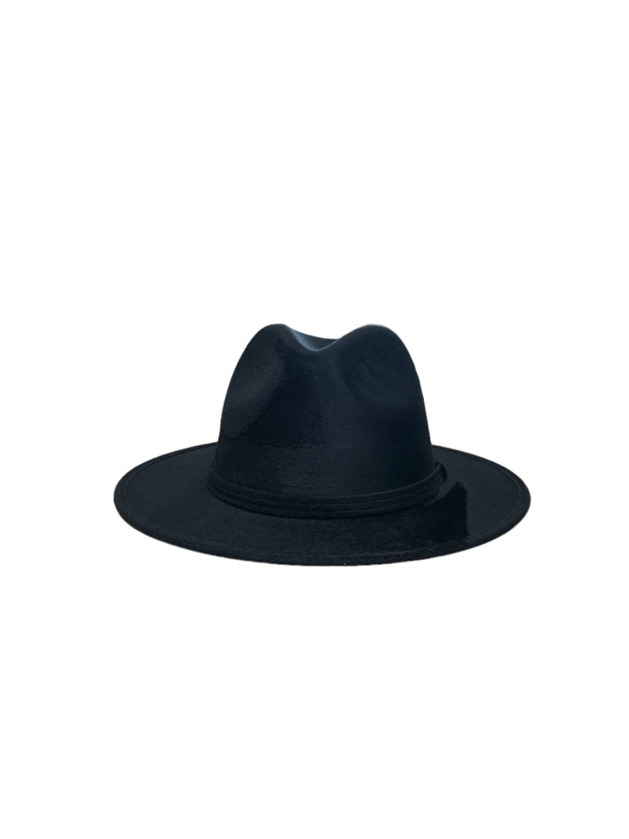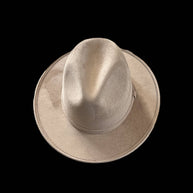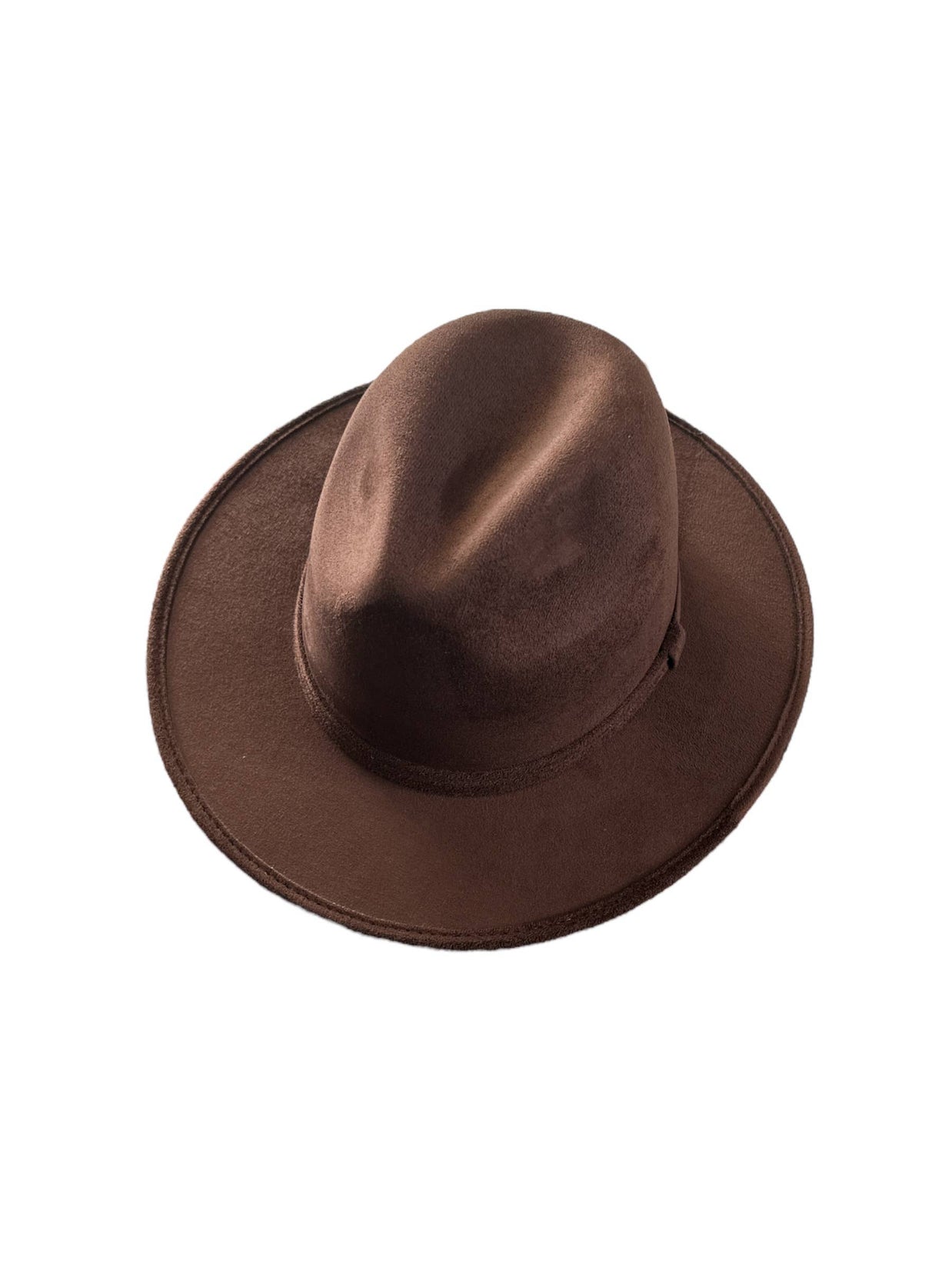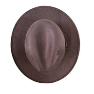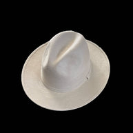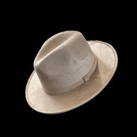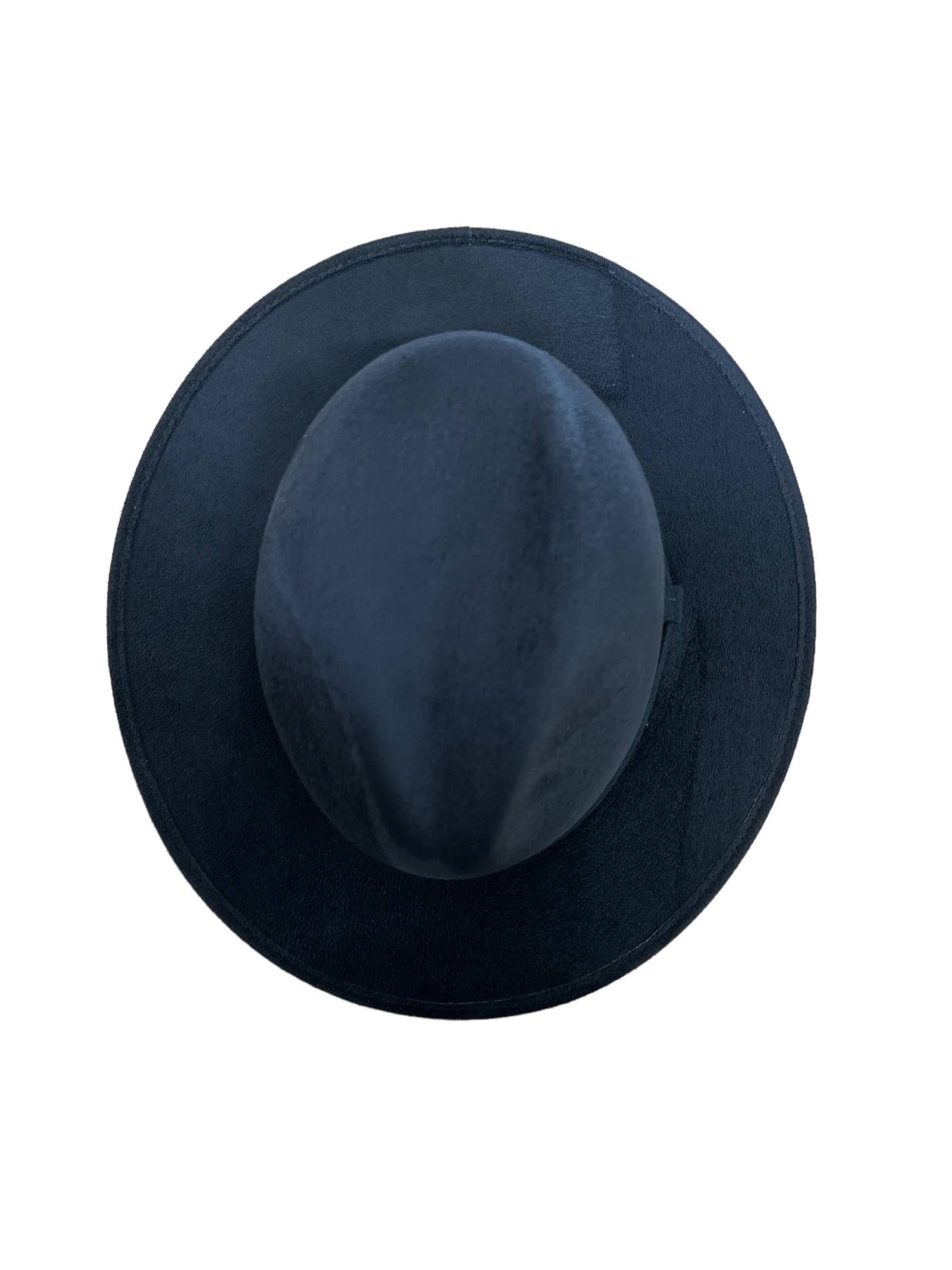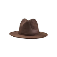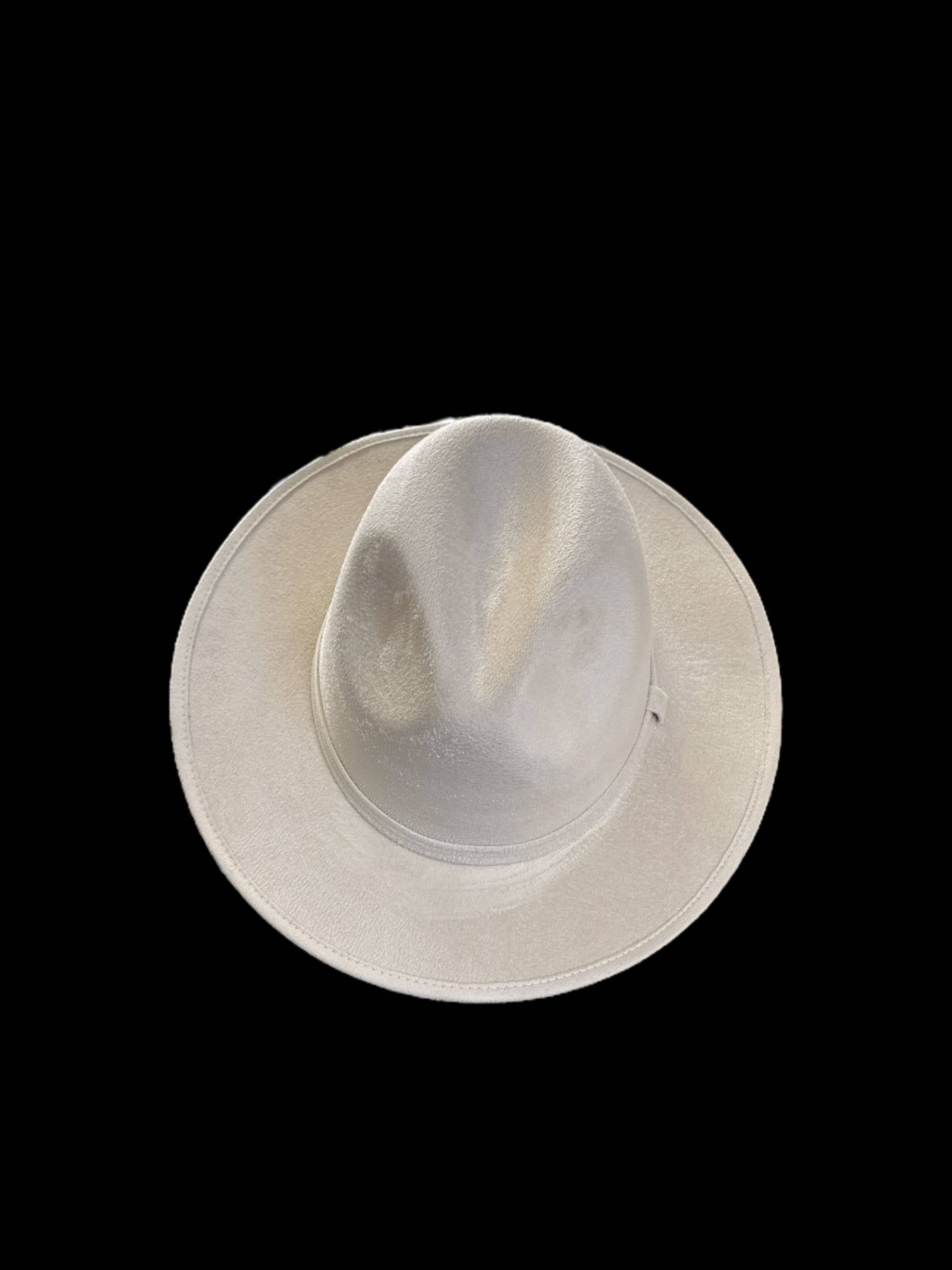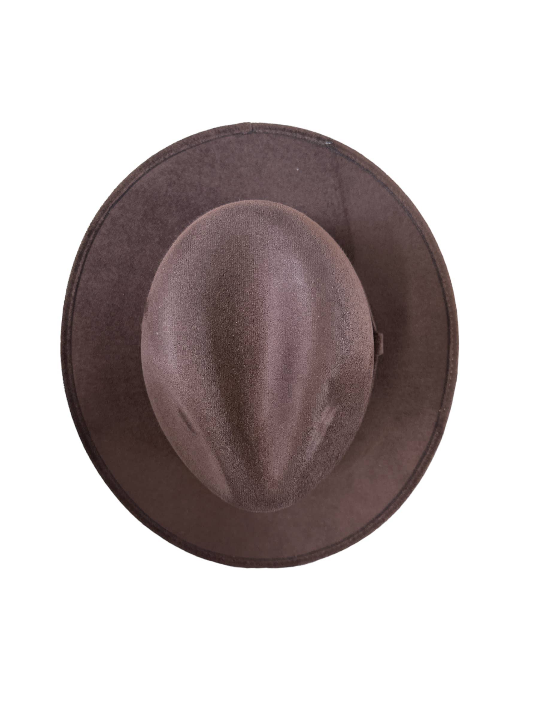 Vegan Suede Fedora. 100% Polyester Made in Mexico Hard brim Elastic band helps with fitting between sizes about 2cm in between. Med. 56cm-58cm. Crown 4 1/2" Brim 2 3/4" Unisex