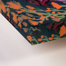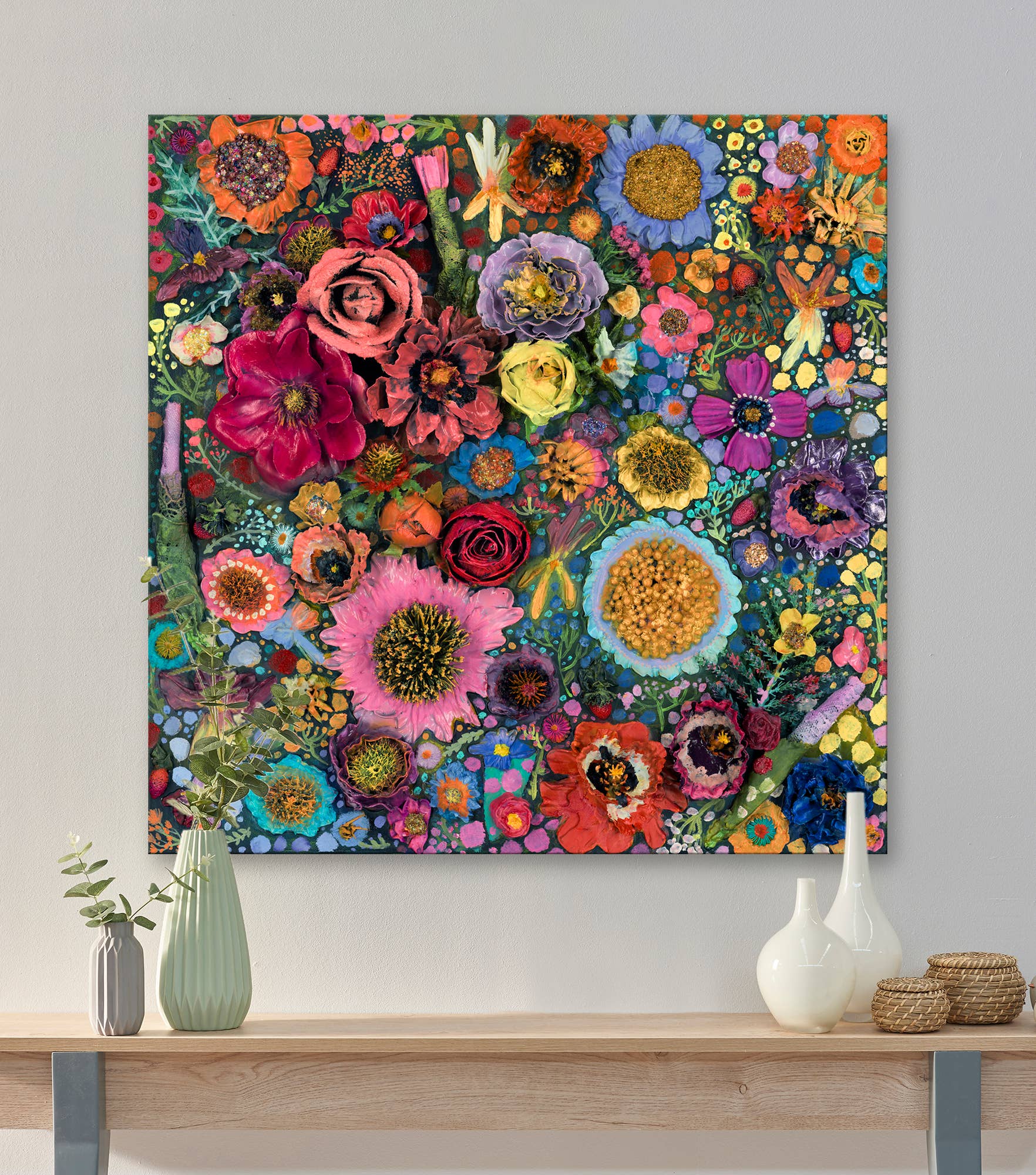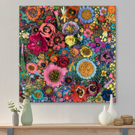 Add a burst of color and pattern to your home with this floral collage wall art. Art created by Eli Halpin. The giclee method is utilized to achieve optimum clarity and color resolution. Printed onto an artist's grade premium canvas. Each piece is hand stretched over a 1.5" deep all-natural wood frame. The canvas wraps around the sides providing a finished decorative edge. Each piece arrives ready to hang in your home and artist biography information is included so that you may learn more about his or her inspiration.