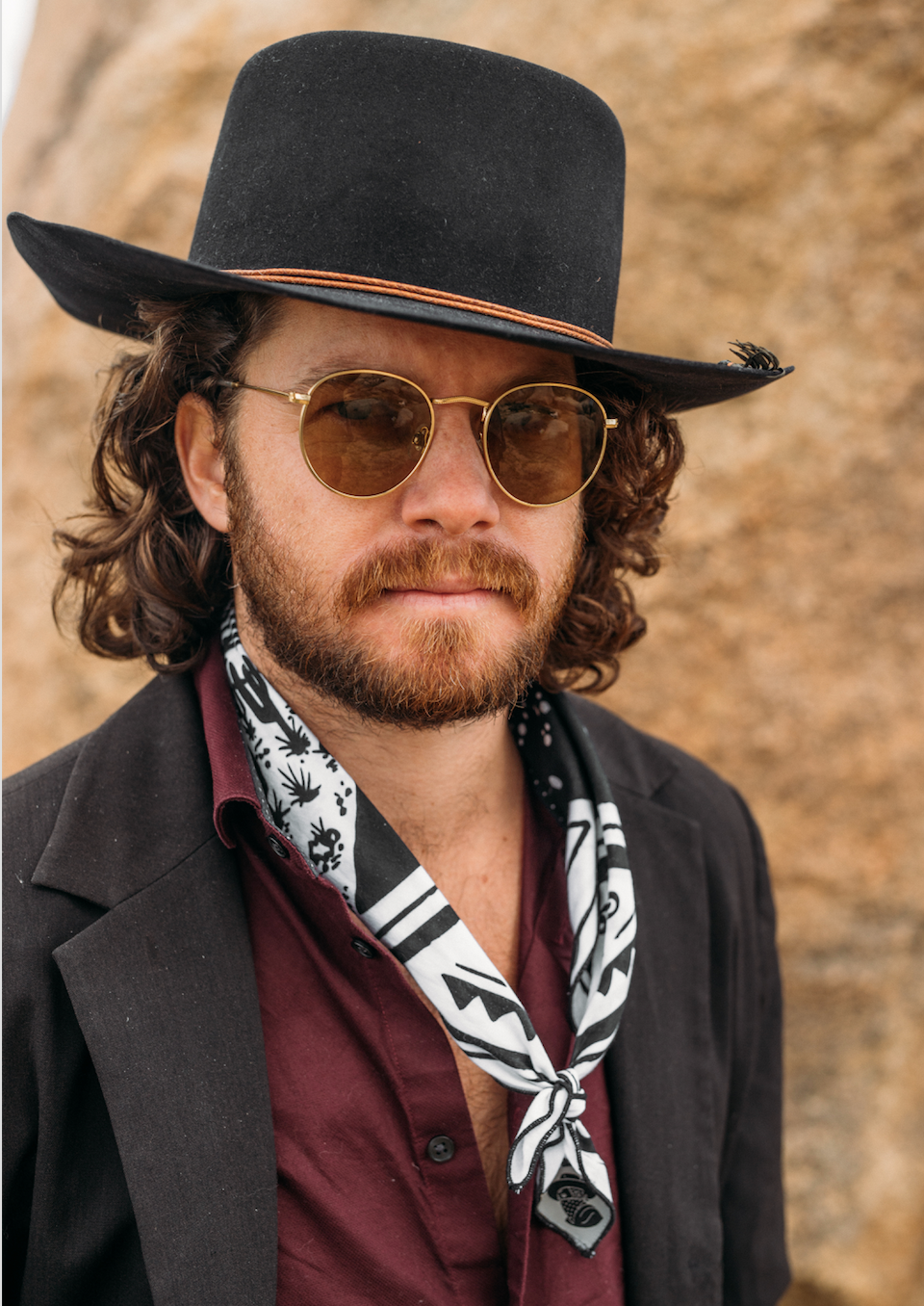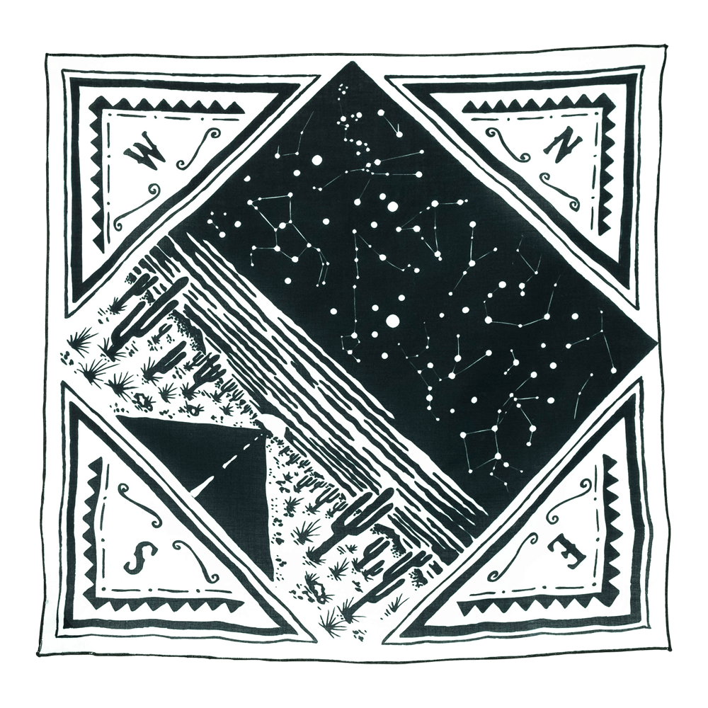 When considering the question "What does it mean to be an Outlaw" Francesco was immediately transported into the world of old Hollywood Westerns. In true cinematic style, iconic images of desert vistas and a starlit sky provide the backdrop for his design.