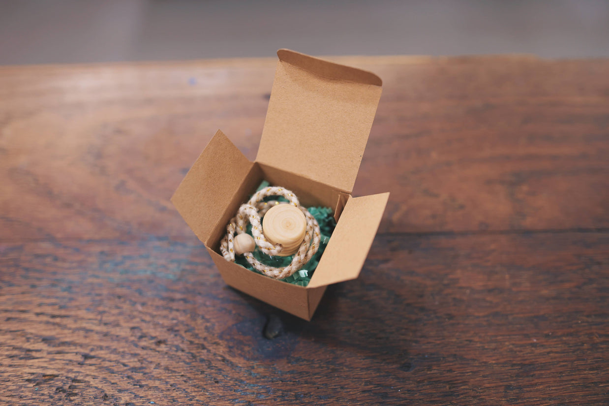 Cashmere Clouds Top - Vanilla Sugar Middle - Rose, Jasmine, Vanilla Orchid Bottom - Cedarwood, Creamy Vanilla, Smooth Musk 10ml glass bottle with a wooden lid. Approx 2.25" tall, with 7" of hanging rope. Instructions are included on the label. Packaged perfectly for gifting or stocking stuffers! Packaged box is 2" x 2" x 2" .