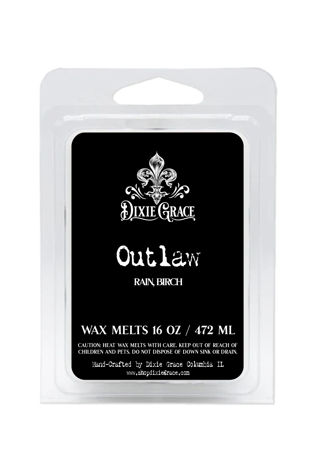 Outlaw Dixie Grace tips her hat to all the Outlaws that came before us with this new blend of water, musk, greens, and birch. Outlaw is fresh and invigorating like the outdoors, but no florals here. While slightly masculine, it’s a great unisex scent. Scent Strength - 4/5 - fresh, earthy, wood, slightly masculine but unisex Wax Melts For use in Wax Warmers, these cubes of scented wax are sure to take you down south in no time! Wax Warmers are available for purchase from Dixie Grace Candle Company or use your own for a flameless alternative to candles! Burn Time (approximate) - 60 to 70 Hours of Warming Time We recommend warming 2 cubes for 3-4 hours at a time over multiple uses until scent is gone from the soy wax.
