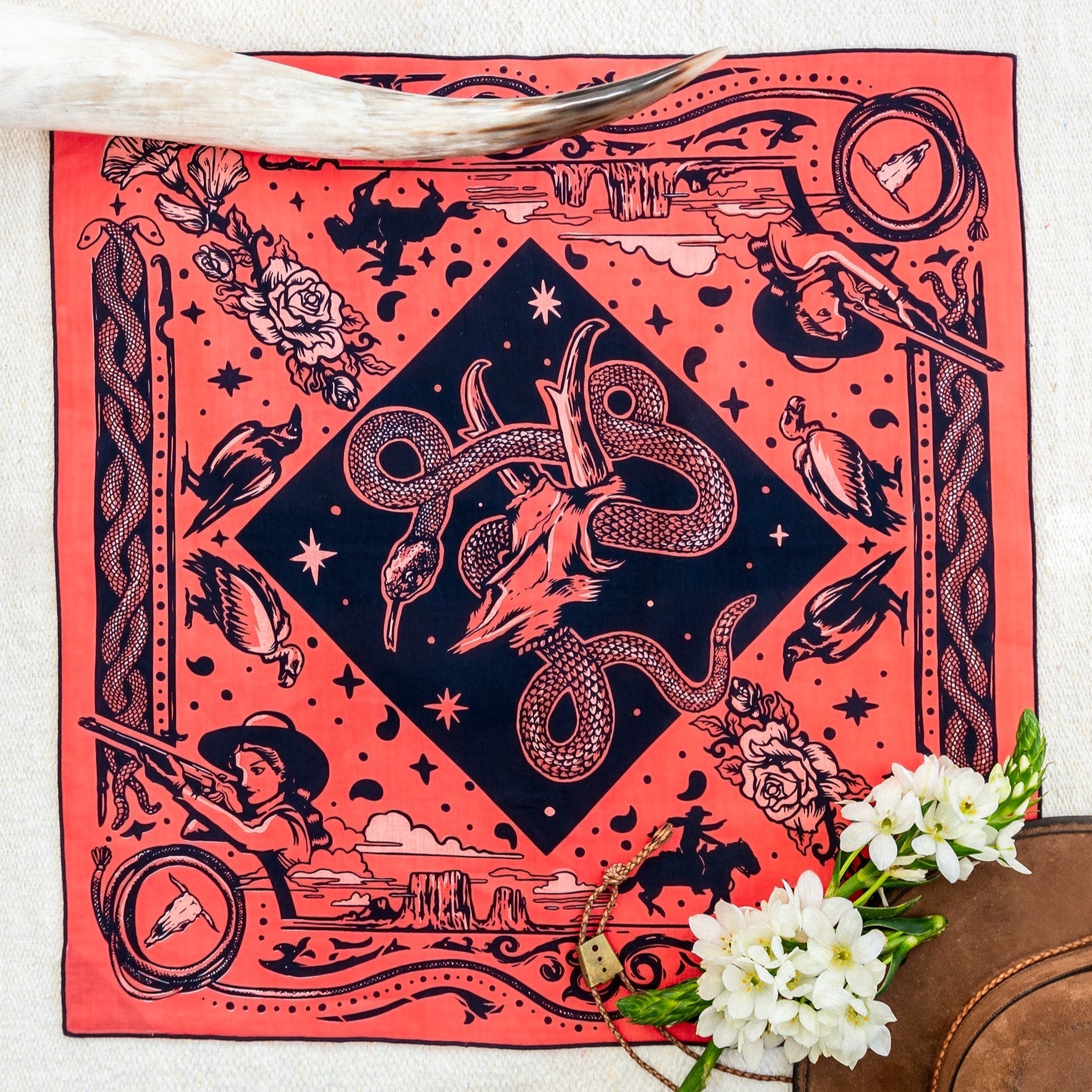 Please note that all of our bandanas are printed, cut, and sewn by hand. There may be slight variations from product to product.