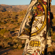 According to Faye, "The design is my interpretation of an outlaw's life in the bush." In addition to traditional symbols of the bushranger lifestyle, Faye incorporated native flora and and earthy color palette to reflect the unique beauty Australia. By tying together historical legend, the natural landscape, and modern design, Faye created a piece that truly conveys the sense of "mateship" and the laid back attitude that characterize what it means to be "Aussie."