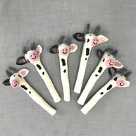Hand Made Felt Cow Pencil toppers are super cute. They make writing fun, and can also be used as a small puppet. Our retailers sell these anywhere between $7-$10 each, some put pencils in them and sell them. Fair Trade, made in Nepal we take a portion of the profits from our felt business to pay school tuition for 3 of our worker's kids in Nepal. Make great goodie bag gifts, teach gifts or Easter Basket gifts.