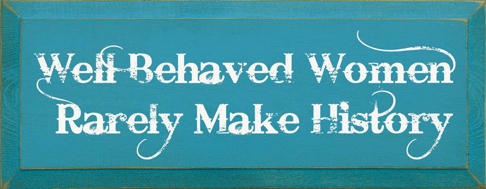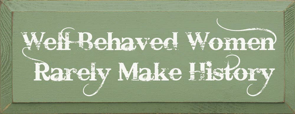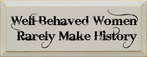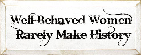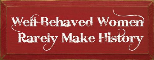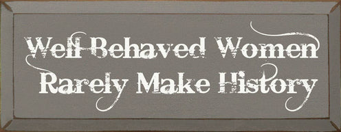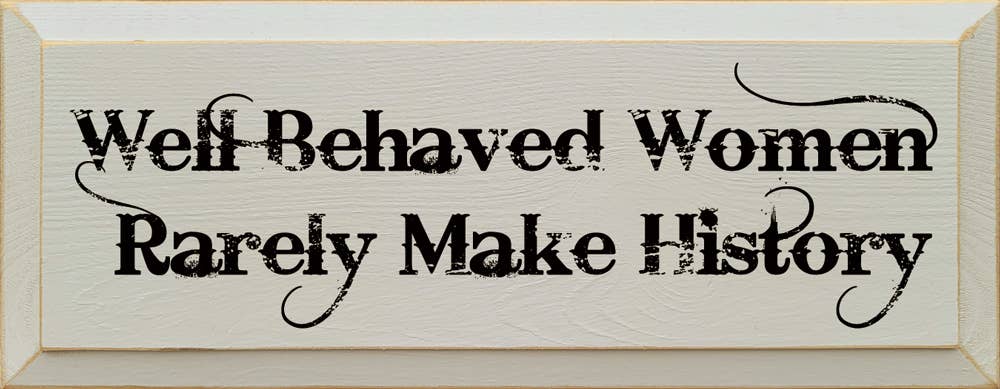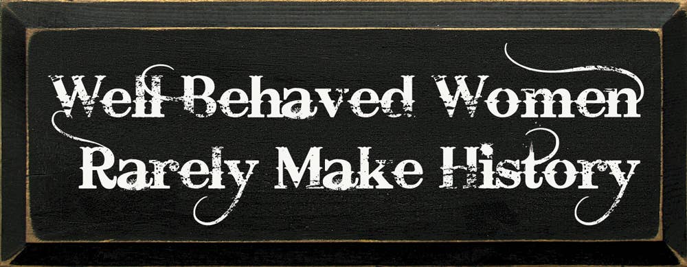 7x18" Well Behaved Women Rarely Make History Wood Sign *This font is purposefully designed very worn, rustic , western. Sawdust City signs are made from solid knotty pine, so please allow for slight imperfections - as wood is imperfect by its nature - but only adds to the character of the product. It is intended to have a rustic, old look and feel. Expect knots, variance in color, and natural cracks - as well as small edge “dents” or chips.